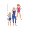 Capri længde leggings og shorts ikke har sidesømme og de har elastik i taljen. De strømpebukser har en halsudskæring og alle de udvendige kanter er færdig med elastik. View B har prinsesse linjer og sidepaneler med rør fra kontrast stoffer.