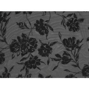 Bold flower flock on stretch net Black