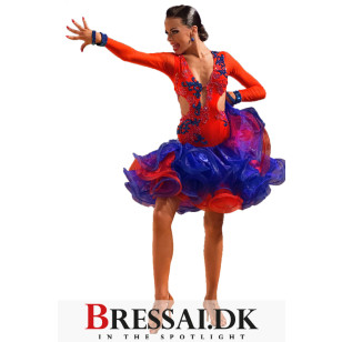 Latin kjole i Poppy og sapphire, dekoreret med Swarovski shimmer i light siam, Tangerine, Hyacint og Cobalt.