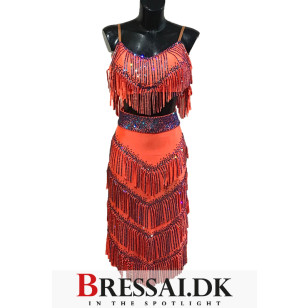 Skøn todelt latin kjole i orange lycra.