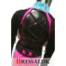Overdelen er lavet i lycra, stenet med Swarovski krystaller med stretch net over, hvilket også er stenet med krystaller, og net ærmer, også påsat plukfryns.