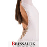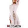 Latin kjole i hvid luxury crepe, dekoreret med håndsyet blonder, Swarovski guld blanding og Stellux Crystal AB